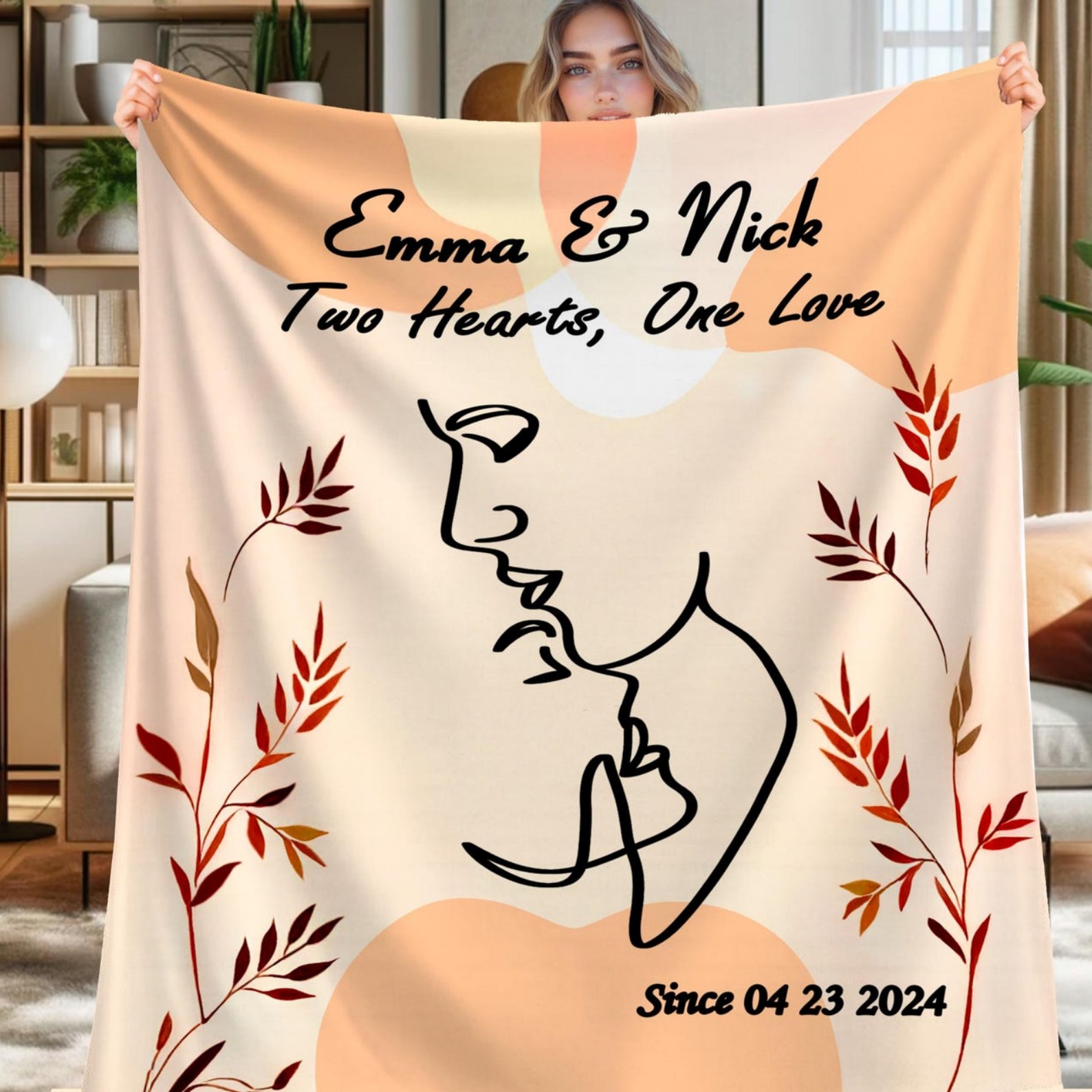 • Custom Couple Name Line Art Blanket, Soft Flannel/Sherpa Throw for Bed Couch, Home Decor, Valentine’s Day/Wedding/Anniversary Gift for Couple/Him/Her